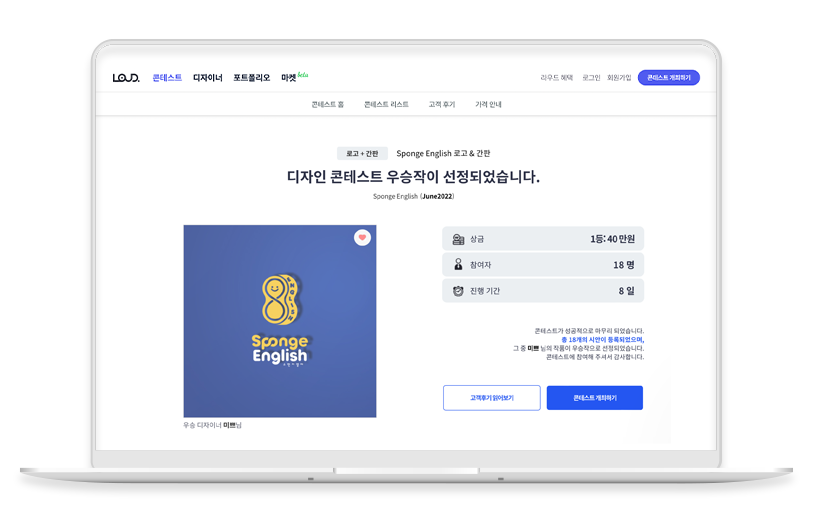 18만 디자이너 회원과 함께 디자인 콘테스트 방식으로 외주를 진행하는 라우드소싱!