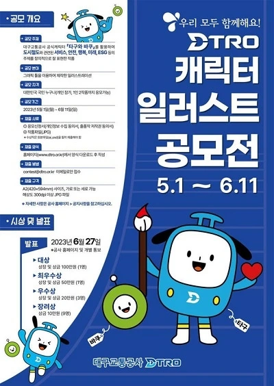 - 대구교통공사 공식캐릭터 「타구와 바쿠」를 활용하여 도시철도와 관련된 서비스, 안전, 행복, 미래, ESG 등의 주제를 창의적으로 잘 표현한 작품