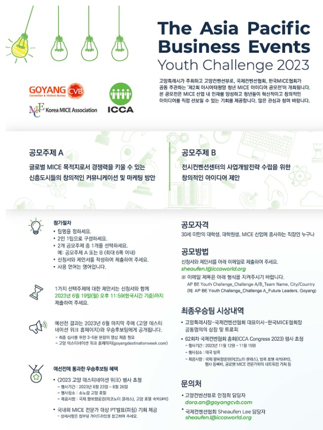 국제컨벤션협회 Sheaufen Lee 담당자 : sheaufen.l@iccaworld.org
