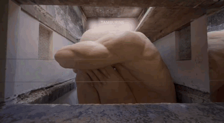 바로 위의 전시장 이미지는 작년 9월에 열린 첫 향수 컬렉션 전시입니다. 이 향수 컬렉션의 주제인 <solace: 한 줌의 위안>을 전시의 주제로 설정하여, 웅크리고 있는 거인을 통해 위안과 함께 공존하는 다양한 감정들을 작품으로 표현해 고객들이 주체적으로 상상하게 만듭니다.