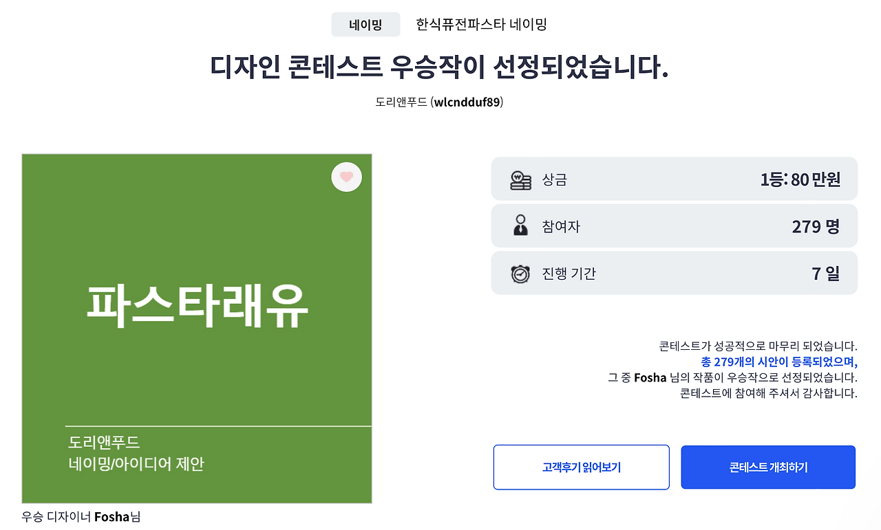 네이밍 선정 후, 로고디자인까지 합리적인 비용으로 받아가셨는데요.