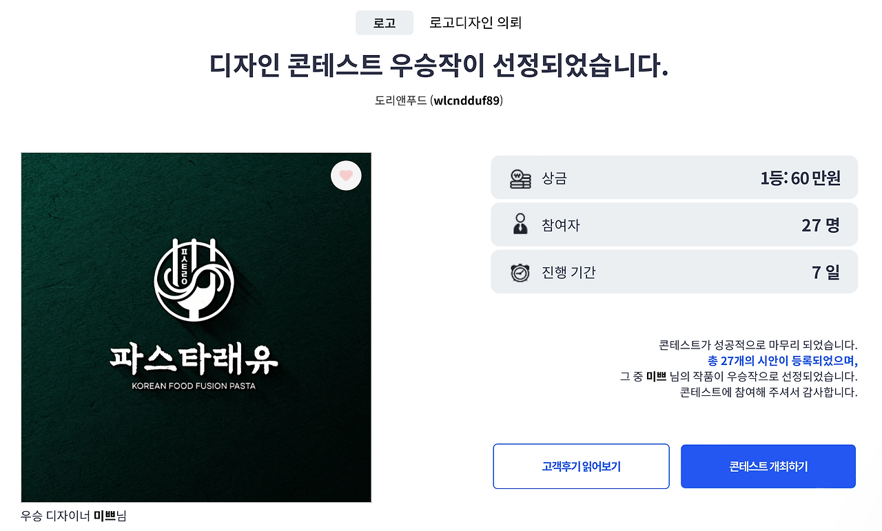총상금 60만원에 7일동안 27분께서 디자인 시안을 제출해주셨습니다.