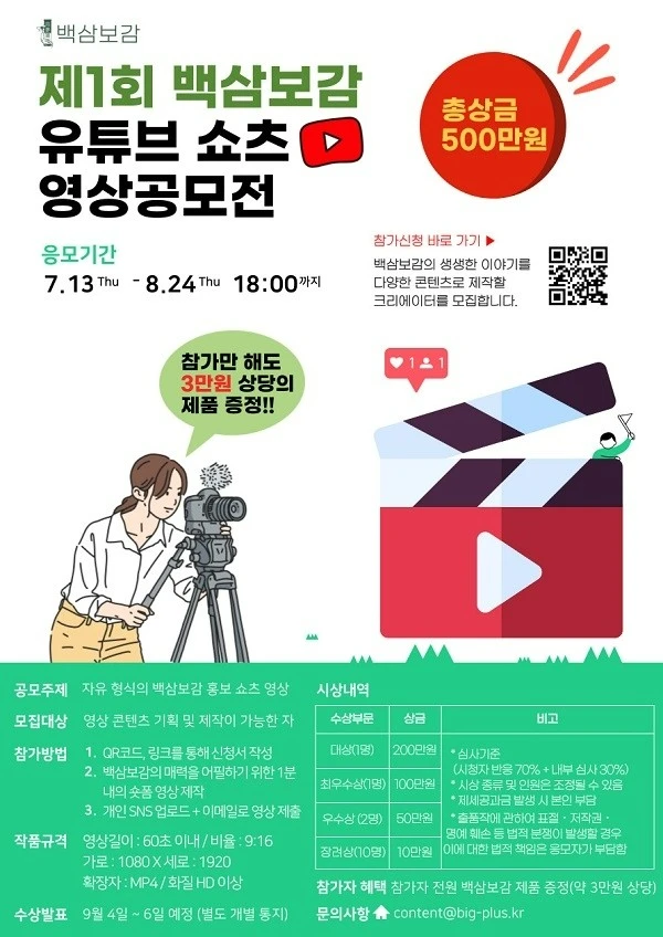 제 1회 백삼보감 유튜브 숏츠 영상공모전
