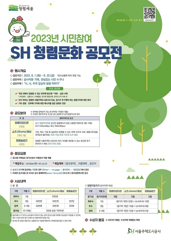 - 자세한 사항은 www.i-sh.co.kr > SH소개 > '윤리경영게시판' 참고 (또는 포스터 QR코드 접속)
