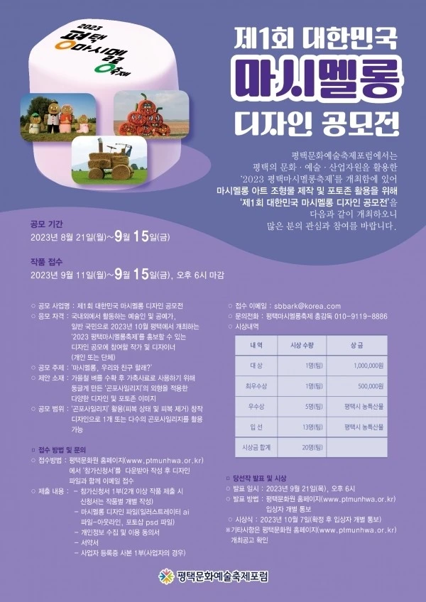 - 일반 국민으로 2023년 10월 평택에서 개최하는 ‘2023 평택마시멜롱축제’를