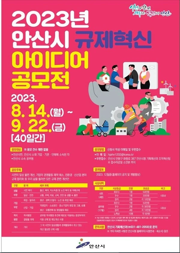- 응모서류는 반환하지 않으며, 제출된 제안에 대한 권리는 안산시에 귀속