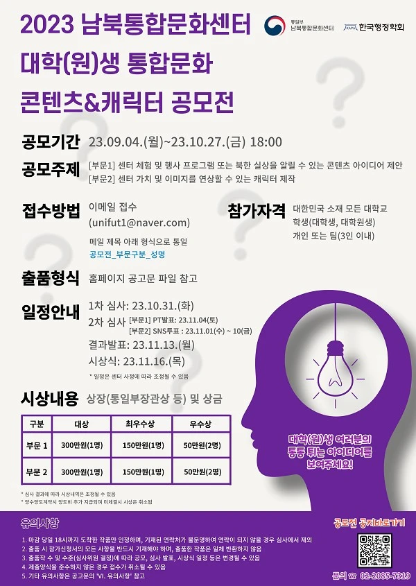 2023 남북통합문화센터 대학(원)생 통합문화 콘텐츠 & 캐릭터 공모전