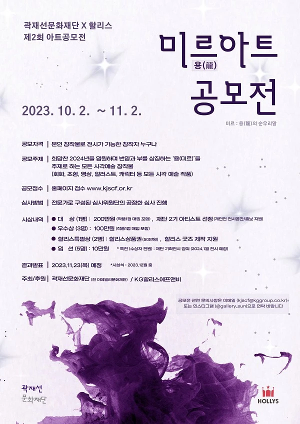 - 결과발표 : 2023. 11. 23.(목) 예정 / 재단 홈페이지 공지 및 수상자 개별통보