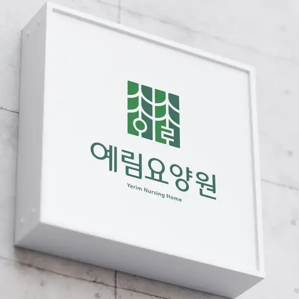 다음으로 소개해 드릴 병원은 예림요양원입니다. 예림요양원의 완성도 높은 로고를 만들기 위해 직선과 곡선을 활용해 로고를 표현했습니다. 또한 예의 바르게 어르신을 섬기는 맑은 숲을 상징한 심볼을 사용해 요양원의 이미지를 강화했습니다.