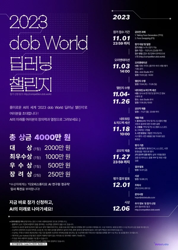 - 더 많은 정보와 참가 신청은 [competition.dob.world] 에서 확인하세요.