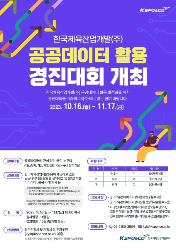 - 자세한 내용은 홈페이지 참조 (www.ksponco.or.kr/contestParticipation/16?mid=a10201030000)