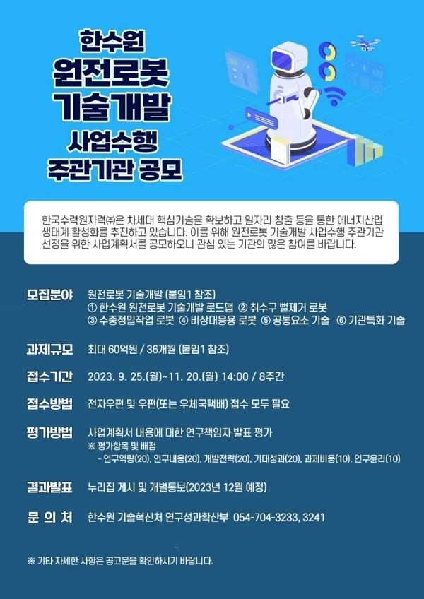 한수원 원전로봇 기술개발 사업계획서 공모