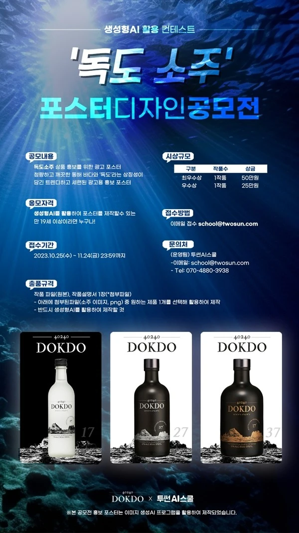 - 독도 소주 상품 홍보를 위한 광고 포스터, 청량하고 깨끗한 동해 바다와 '독도'라는 상징성이 담긴 트렌디하고 세련된 광고용 홍보 포스터 디자인