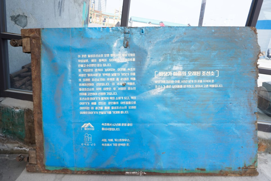 하지만 많은 추억이 담긴 곳을 없애버리기보다는 조선소에 담긴 이야기를 사람들에게 들려줄 수 있는, 하나의 문화공간이 되었으면 좋겠다는 생각을 했고 이를 현실화하여 지금의 칠성조선소가 된 것입니다.