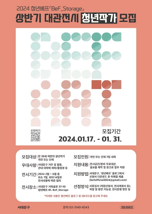 2024 청년베프 <BeF_Storage 상반기 무료 대관전시> 청년작가 모집