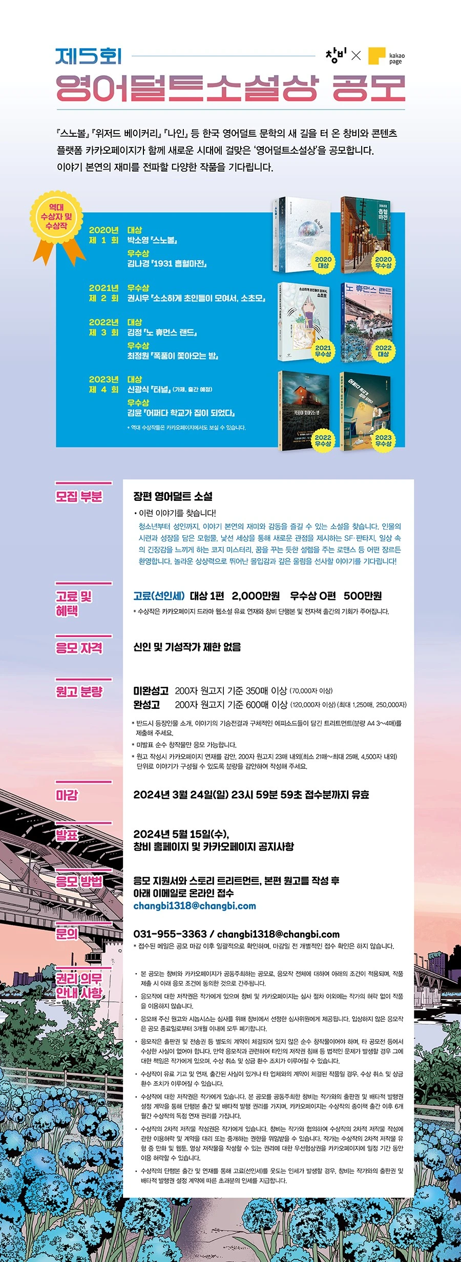 - 발표 : 2024년 5월 15일(수), 창비 홈페이지 및 카카오페이지 공지사항