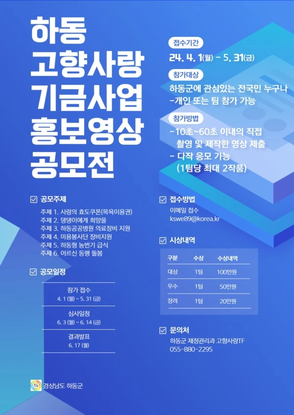 하동고향사랑기금사업 홍보 동영상 공모전