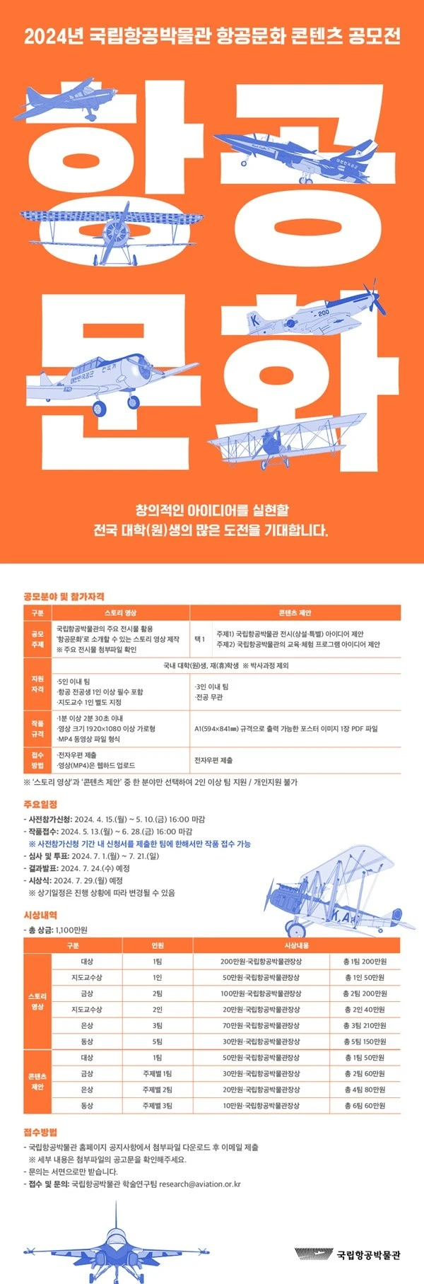 2024년 국립항공박물관 항공문화 콘텐츠 공모전