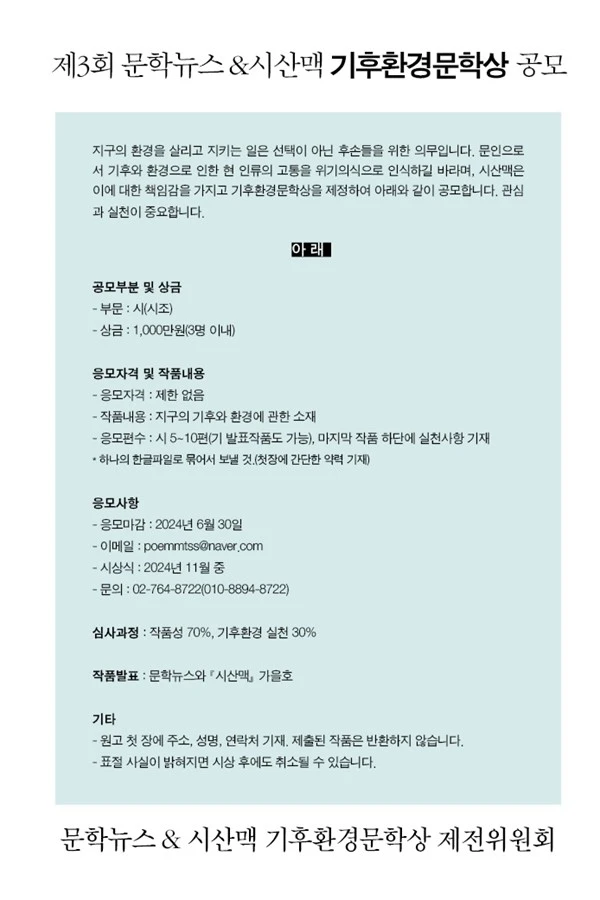 제3회 문학뉴스 시산맥 기후환경문학상 공모