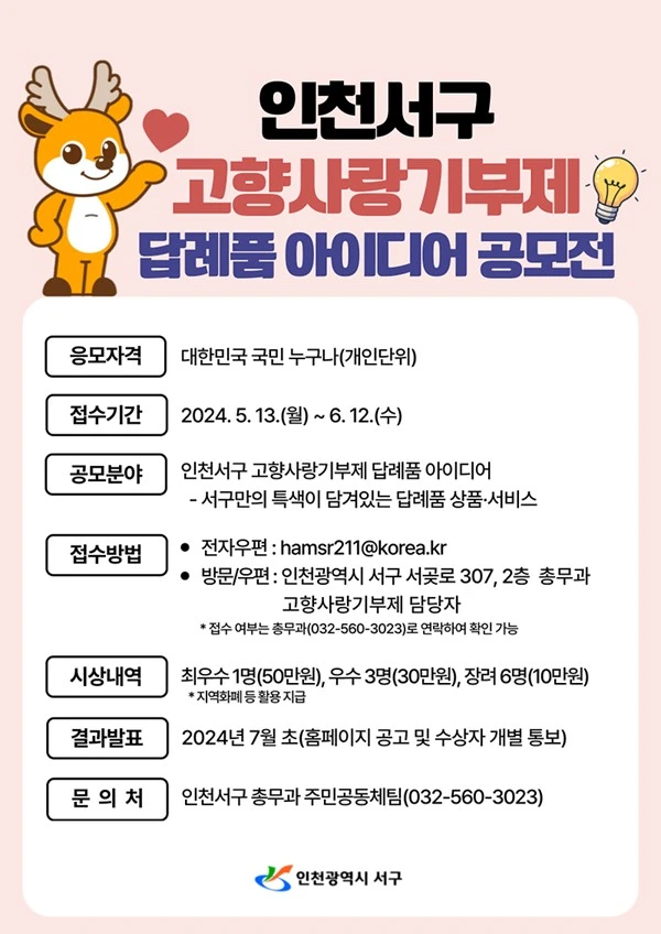 인천서구 고향사랑기부제 답례품 아이디어 공모전