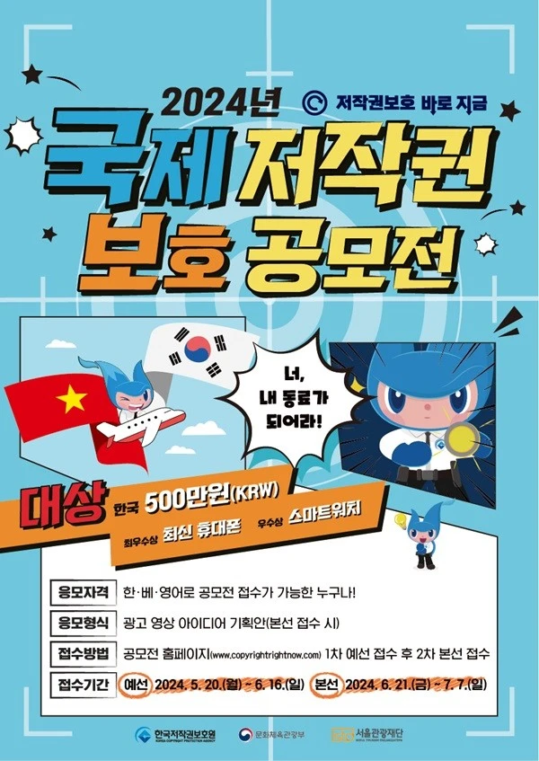 - 본선: 공모전 홈페이지 (www.copyrightrightnow.com) 온라인 접수
