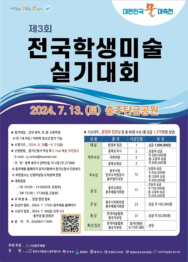 - 시 상 식 : 2024. 7. 26.(금) 오후 3시 한국수자원공사 충주댐 물문화관