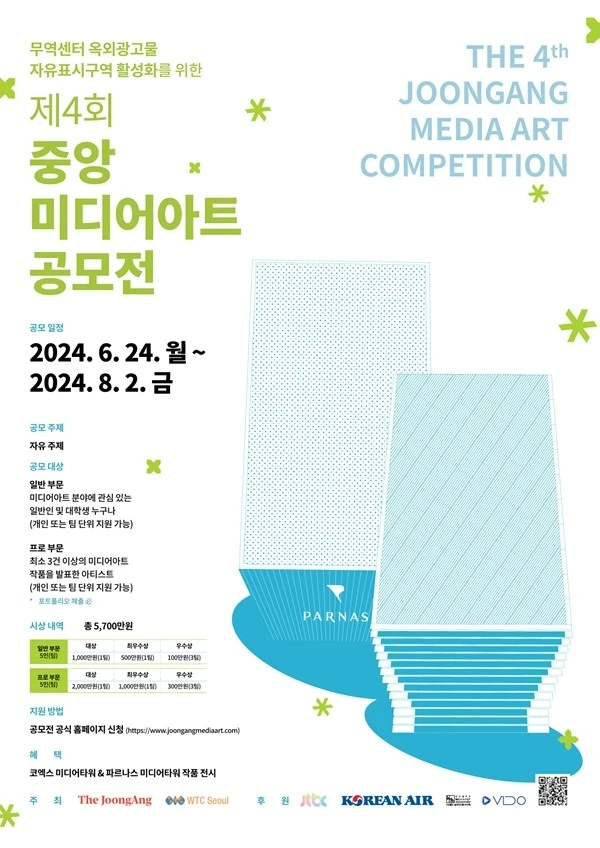 - 신청방법 : 중앙 미디어아트 공모전 홈페이지 통한 온라인 지원신청(www.joongangmediaart.com)
