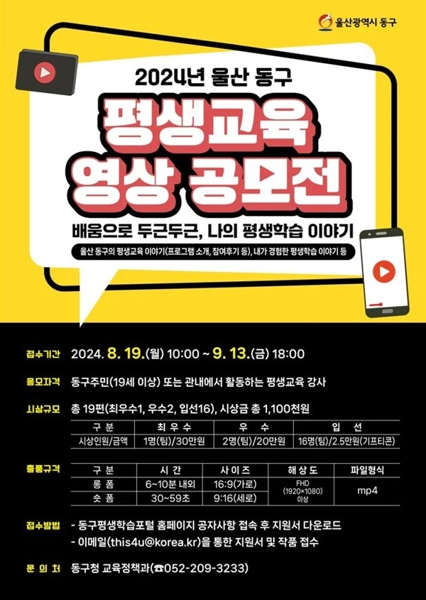 2024년 울산 동구 평생교육 영상 공모전