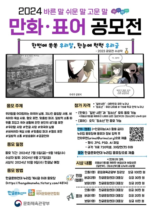 2024 바른 말 쉬운 말 고운 말 만화·표어 공모전