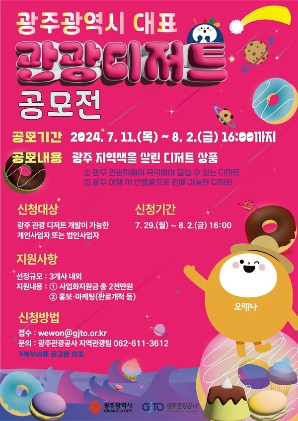 - 신청대상: 광주 관광 디저트 개발이 가능한 개인사업자 또는 법인사업자