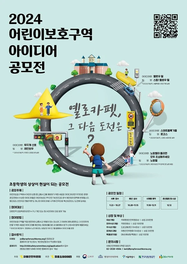 - 어린이보호구역을 직접 방문하여 교통사고 위험이 있는 장소와 그 이유에 대해 설명하고, 더 안전하게 만들기 위한 새로운 아이디어를 제안하는 동영상을(3분 내) 촬영해서 참가 신청서와 함께 제출하세요.