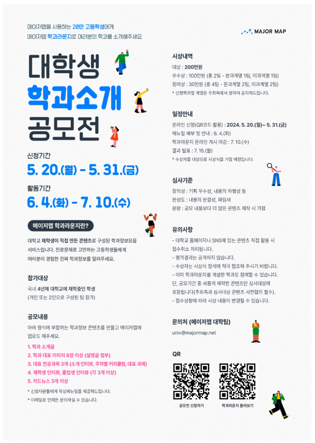 - 이미 콘텐츠가 제작된 학과도 참여할 수 있습니다. 단, 공모기간 중 새롭게 제작한 콘텐츠만 심사대상에 포함됩니다.