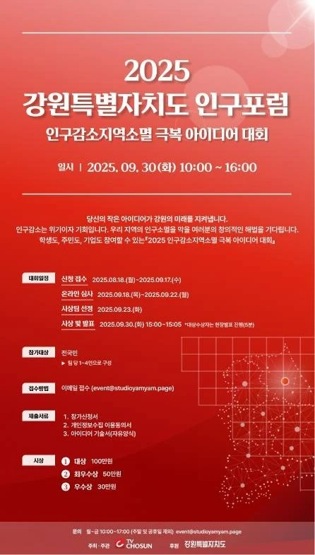 - 참고사항 : 대상 선정자는 9월 30일(화) "2025 강원특별자치도 인구포럼" 행사에서 발표 진행.