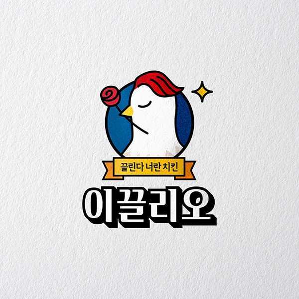 매력이 넘치는 치킨에 이끌린다는 콘셉트의 캐릭터 일러스트형 로고 디자인입니다.