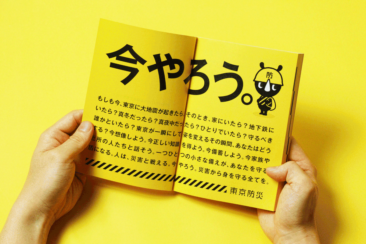 재난대비를 위한 매뉴얼을 제작한 도쿄도청은 Nisigner, Dentsu와 공동 디자인 협업으로 지진에 대하기 위해 매뉴얼을 제작했으며 이를 750만 가구에 배포하였습니다. 비상시에도 쉽게 찾을 수 있는 노란색과 검은색 줄무늬로 시선을 사로잡고 만화책 형식으로 재미를 더해 재난이 아닌 상황에서도 사용자들의 관심을 끌어 재난이 오기 전에 미리 대비할 수 있도록 도와줍니다. 재미와 참신함으로 재난 상황과 상관없이 차근차근 읽어보고 싶은 디자인이네요.