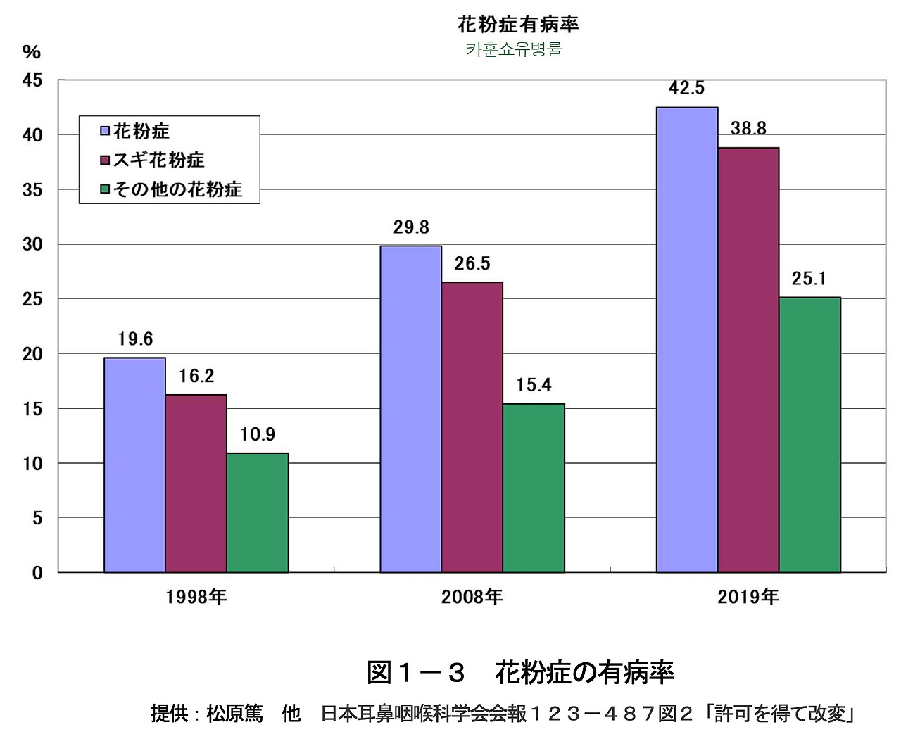 환경성 환경보건부 환경안전과에서 발간한 <화분증 환경 보건 매뉴얼>에 따르면 2019년을 기준으로 약 42.5%의 인구가 카훈쇼를 겪고 있으며, 그 인구는 매년 증가 현재는 2명 중 1명이 카훈쇼를 겪고 있는 것으로 추정, '국민병'이라고 불려도 전혀 손색이 없는 것이다.