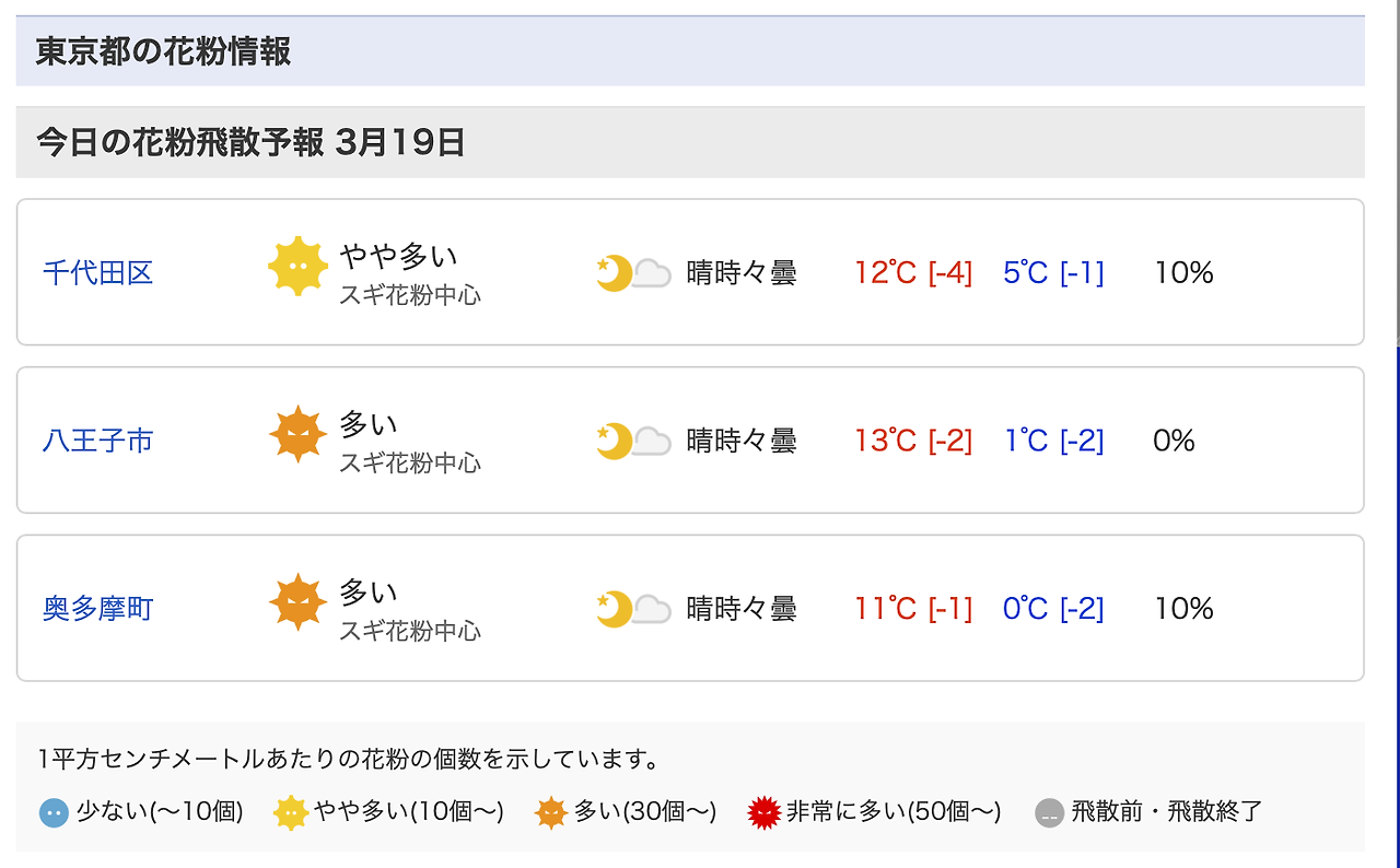 거주하고 있는 시뿐만 아니라 구 단위로 매일의 일기예보와 함께 카훈의 양도 확인할 수 있다. 같은 도쿄도에서도 산림이 많은 하치오지시, 오쿠타마마치가 카훈의 양이 더 많다.