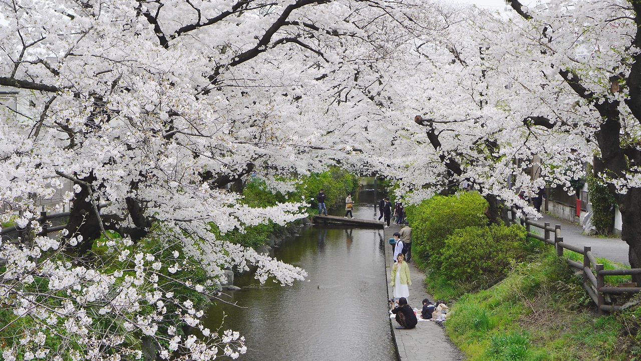 역시 벚꽃은 물가에 핀 벚꽃이 예쁘다. 센가와의 양옆으로 벚꽃나무를 감상할 수 있다. 만개에도 메구로강처럼 방문객으로 북적이지 않는다. 군데군데 돌로 만들어 놓은 벤치가 있어서 앉아서 쉴 수 있다. 길이 좁기 때문에 걸을 때는 앞뒤에서 오는 자전거에 주의해야 한다.