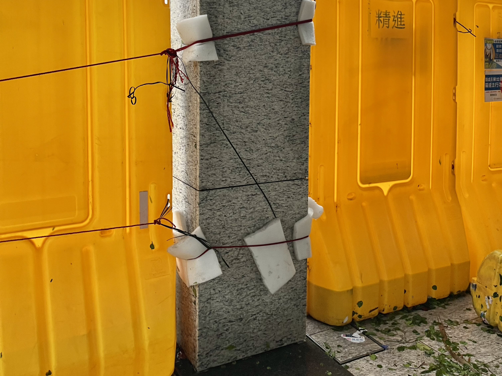 그렇다면 현재, 홍콩 사람들은 어떻게 태풍에 대비할까? 우선 공사 중인 건축물을 살펴보면, 거푸집에 설치된 안전망을 커튼처럼 묶는다. 안전망은 강한 바람에 쉽게 찢어지거나 날아갈 수 있기 때문에 묶어준다면 그 피해를 줄일 수 있다. 그리고 공사현장 주변의 이동식 파티션은 구조체 묶음으로 인해 바람에 의해 날아가는 것을 방지할 수 있다. 그다음으로 사용 중인 건축물에는 유리창에 테이프를 붙이고 문하부에는 모래주머니를 설치한다. 바람에 날아온 날카로운 물건으로 인해 창호에 손상이 나더라도 테이프를 이용한다면 흩어져 내림을 방지할 수 있다. 그리고 물에 의한 범람에 대비하기 위해 문 아래에 모래주머니를 설치한다.