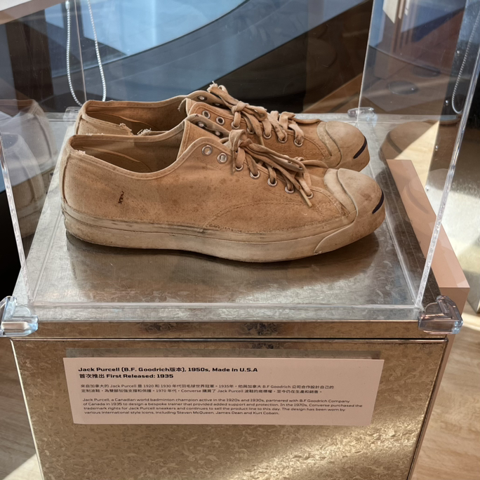창가를 따라 전시된 100년 혹은 수십 년 전의 제품들을 발견할 수 있다. 그중 재밌는 부분은 오늘날에도 출시되고 있는 Converse, Onitsuka tiger, Adidas Stan Smith 등의 제품들의 초기 모델을 볼 수 있다는 점이다. 그리고 지금도 그 제품군들이 세대를 넘어서 사랑을 받고 있다.