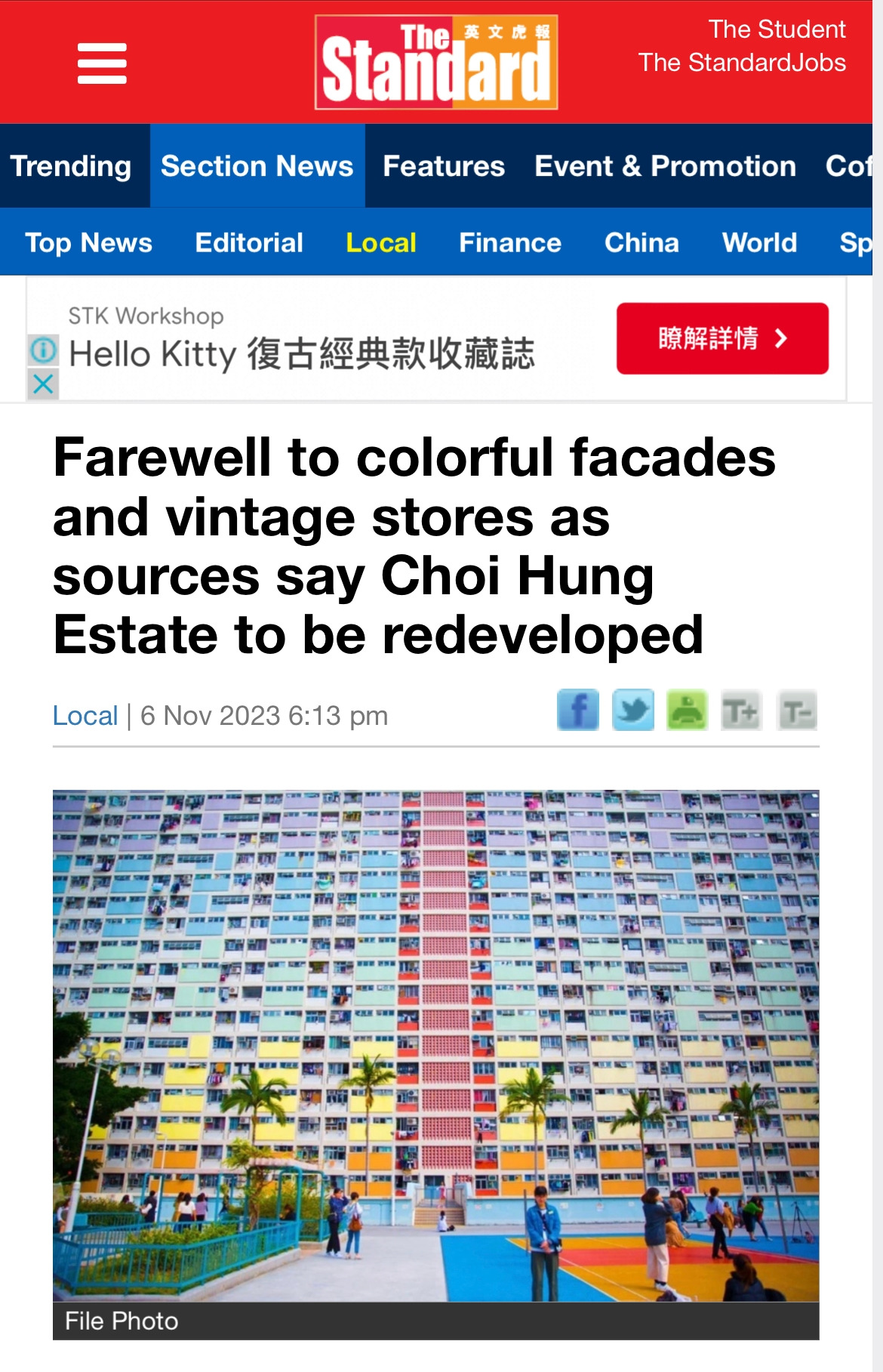 *관련내용6: Farewell to colorful facades and vintage stores as sources say Choi Hung Estate to be redeveloped