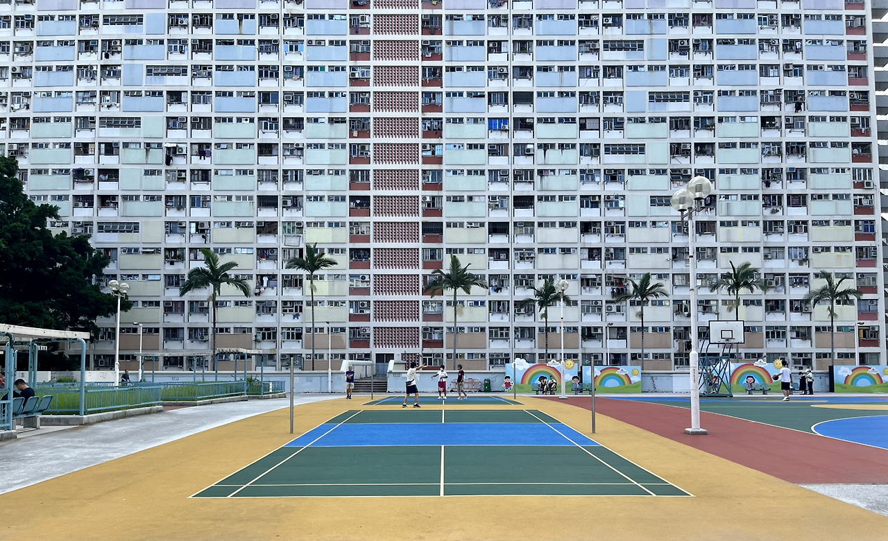 Choi Hung (彩虹) 은 무지개라는 뜻이다. 분명 단지이름 때문이리라. 단지로 연결되는 지하철 역 Choi Hung 내부는 무지개 색상의 타일로 디자인되어 있다. 그리고 단지 내 건물의 입면과 공용시설 농구장의 바닥면 역시 화사한 무지개 색으로 되어있다.