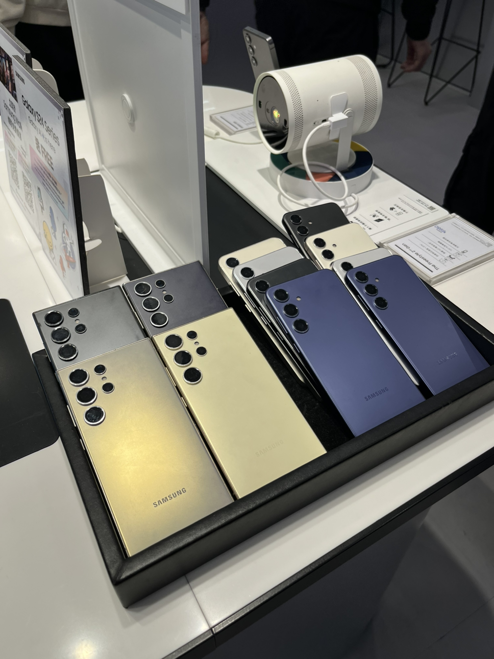 Galaxy 제품이 반응이 좋기 때문일까? 한 달 만에 다시 방문한 매장, 인테리어가 바뀌어 있음을 발견했다. 검은색 테이블이 메탈릭 마감으로 바뀌었고 입구에는 LED portal이 추가되었다. 지난 2월에 방문했을 때보다 좀 더 밝아진 느낌이 더 나은 것 같다.