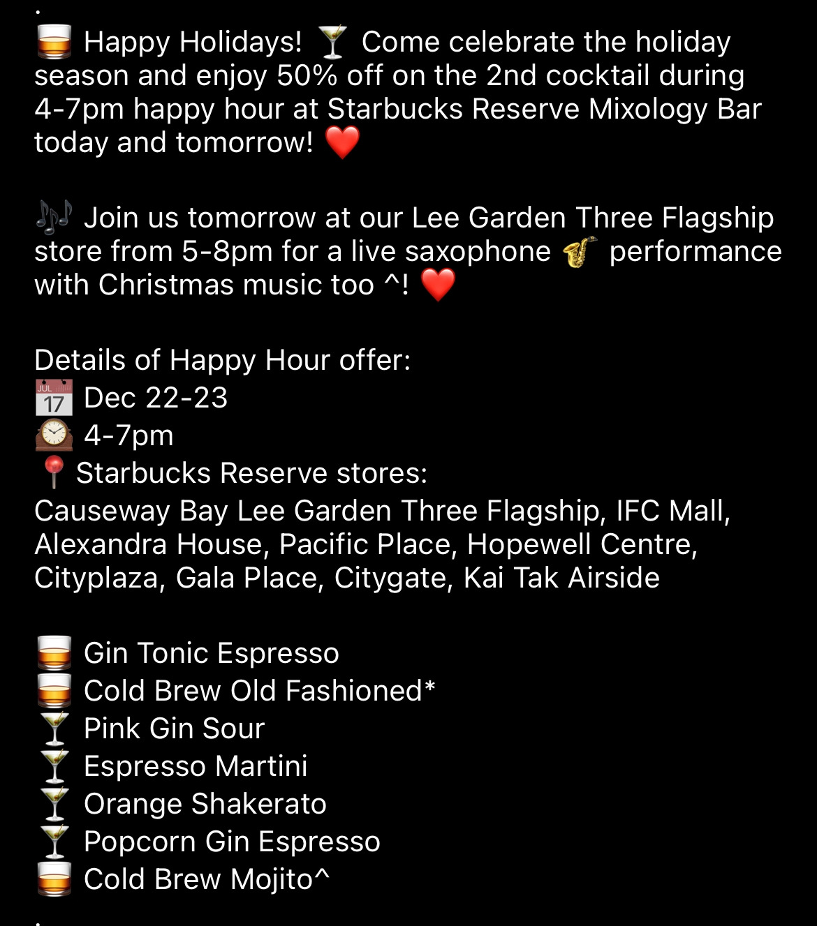 홍콩에서 이 칵테일을 즐길 수 있는 곳은 어디인가? 총 9군데의 매장에서 만나볼 수 있다. 모두 Reserve 매장이다.