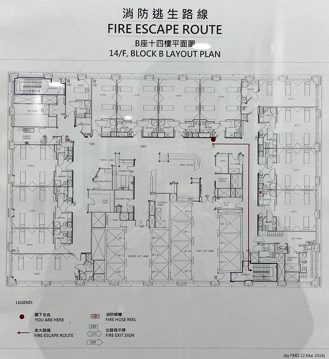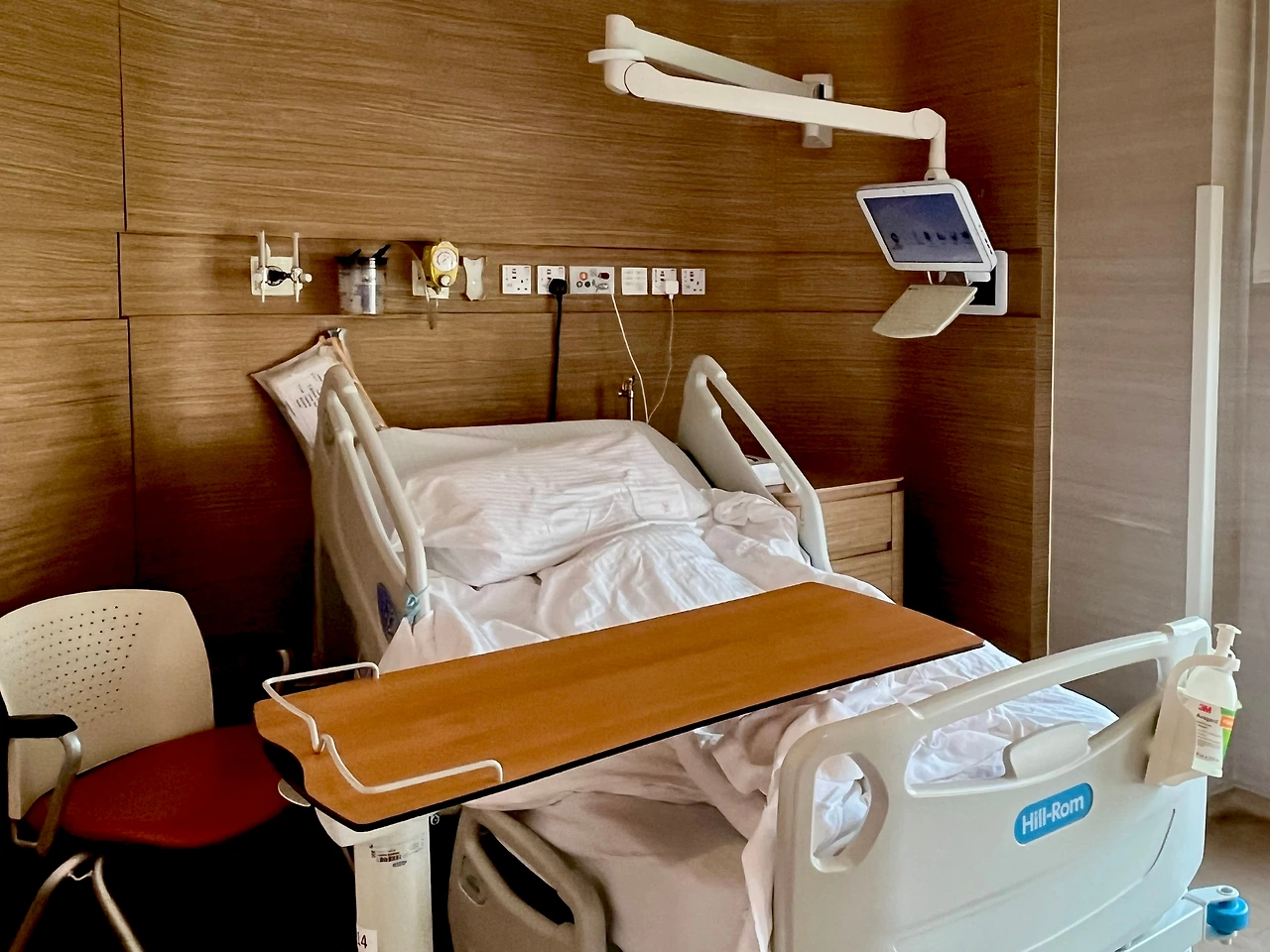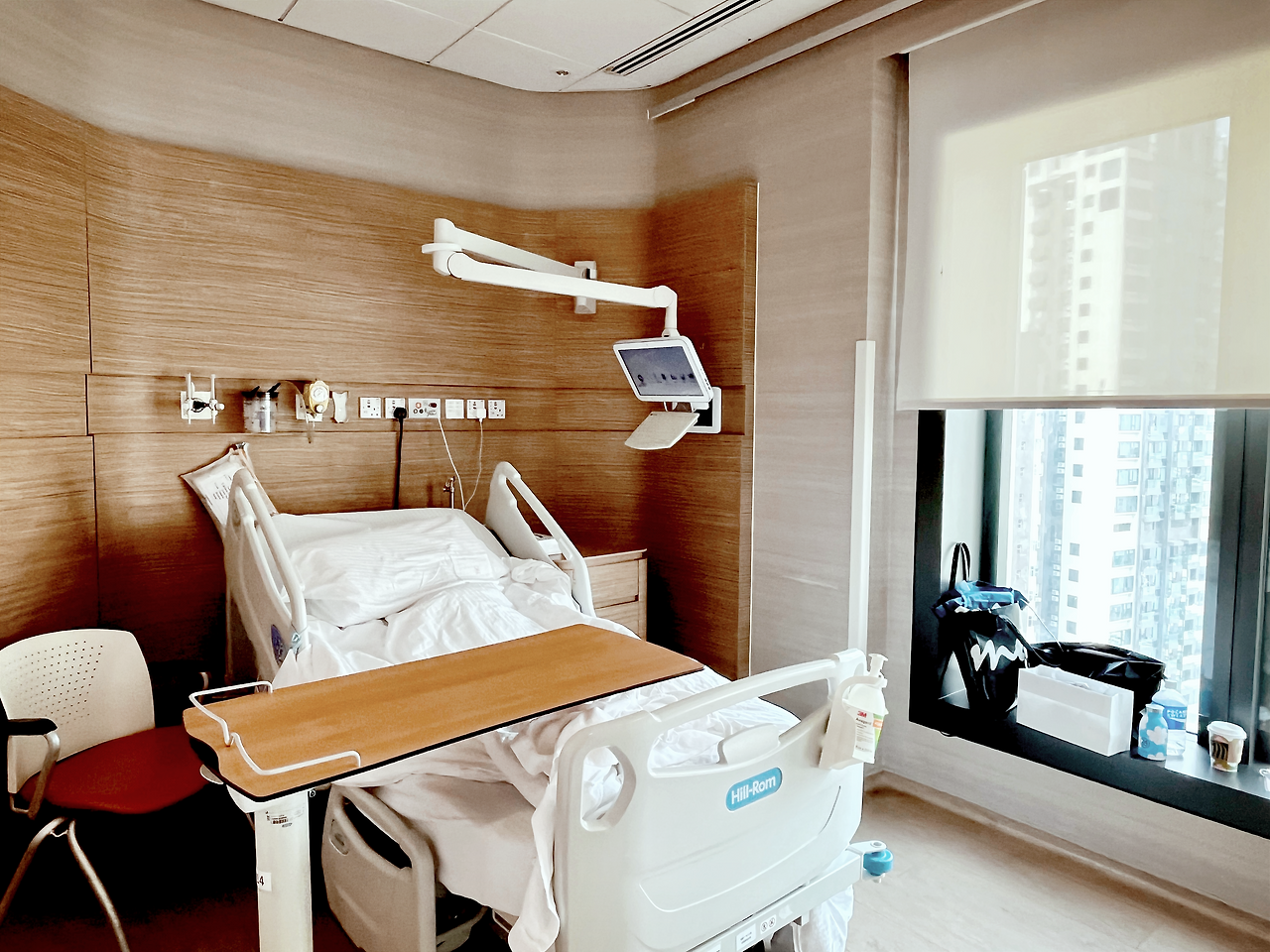 병실로 들어서면(4인 환자실의 경우), 입구에 2개의 화장실이 있고 뒤로 침대들이 놓여있는 구조이다. 각 침대 공간은 음식을 주문하거나 영상을 볼 수 있는 벽부형 모니터가 있다. 좀 특이한 점은 보안용 보관함이 비치되어 있다는 점이었다. 중요한 소지품은 이곳에 보관하면 분실의 염려를 덜어줄 수 있다. 한국과 다른 점은 냉장고가 없다는 점이다. 한국의 경우, 보통 손님들이 음료수를 사 오는 것이 관습인데 홍콩은 그렇지