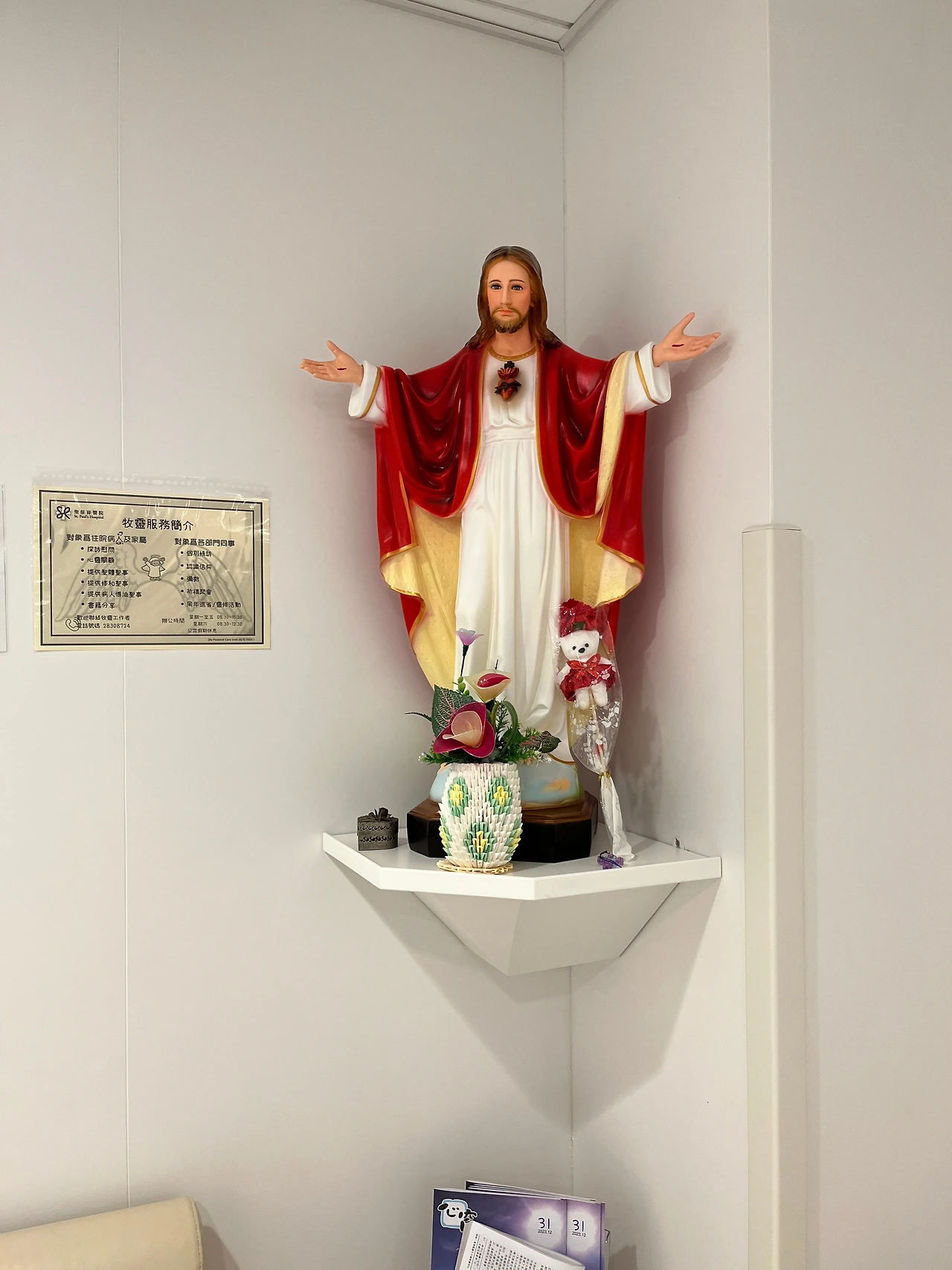 병원의 주출입구로 입장하면, 에스컬레이터를 기준으로 왼쪽으로 24H 외래진료를 받는 곳과 오른쪽으로 수속절차를 받는 곳으로 나눠진다. 로만 가톨릭 병원이기 때문에 여러 종교적 동상을 맞이하게 된다.