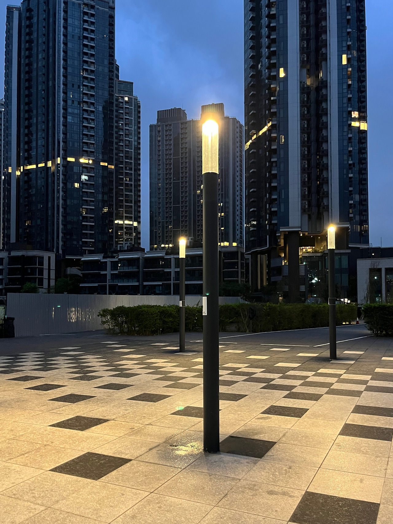 오픈 스페이스와 조경으로 구성된 광장의 조명에서 가장 눈에 띄는 특징은 조명의 높이가 된다. 조명의 높이가 사람의 시선에 가까웠을 때 느껴지는 불편함을 최소화하고, 공간을 밝힐 효율성을 고려해 디자인된다 무릎높이만큼 낮추거나, 사람의 키보다 높은 조명을 배치하여 이를 극대화한다.