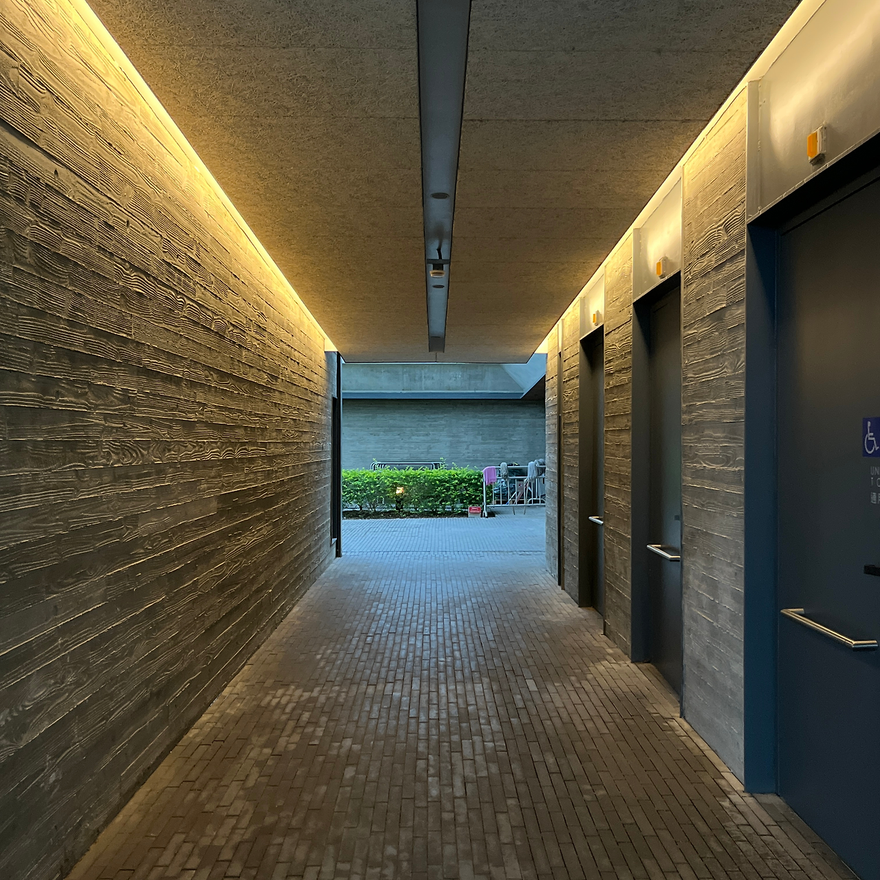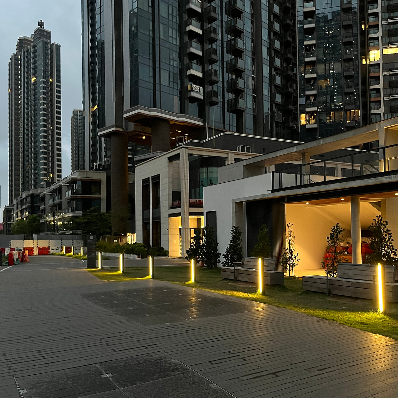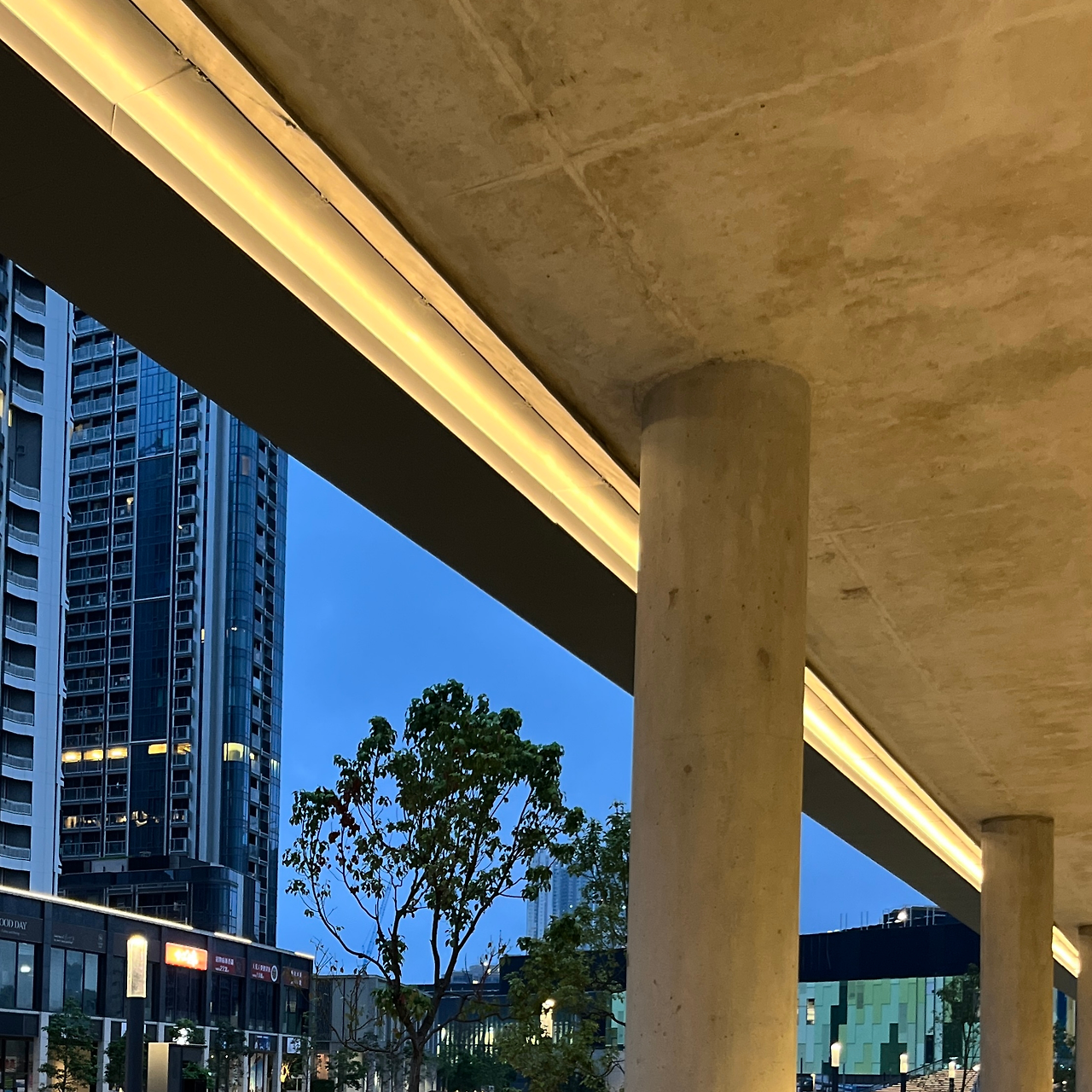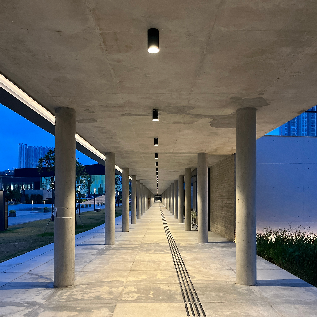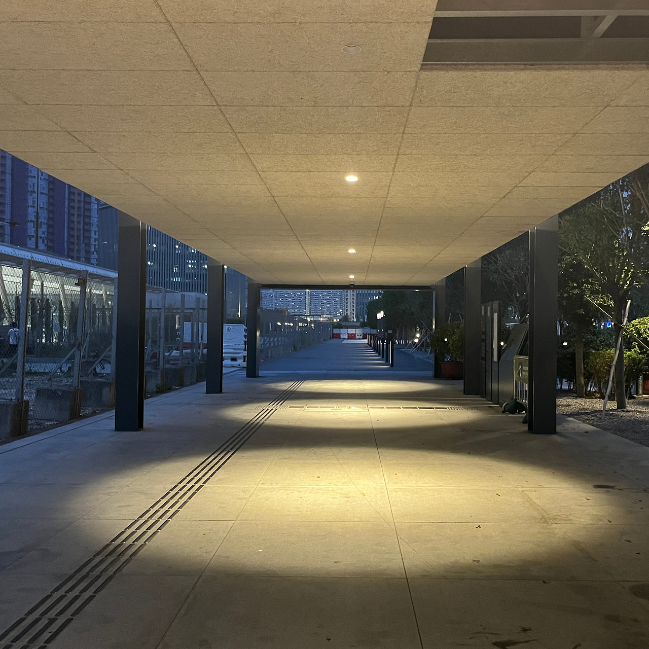 광장과 단지 혹은 단지와 단지를 이어주는 곳에는 조명의 간격을 좁히거나 Spot down-lighting을 사용하여 자연스럽게 이용을 유도한다. 멀리서 인지가 필요하다면 Linear Led 조명을 천장에 디자인해 준다.