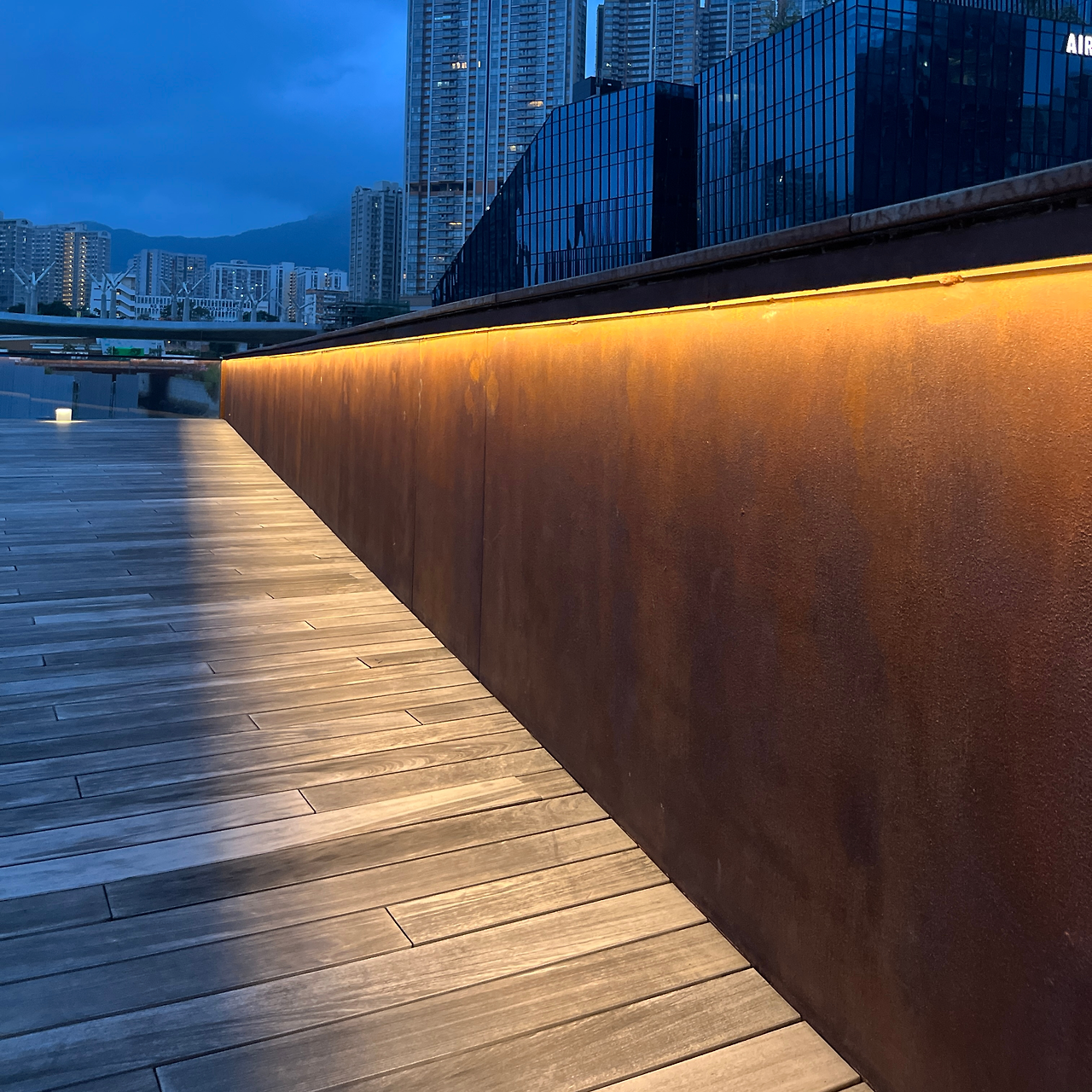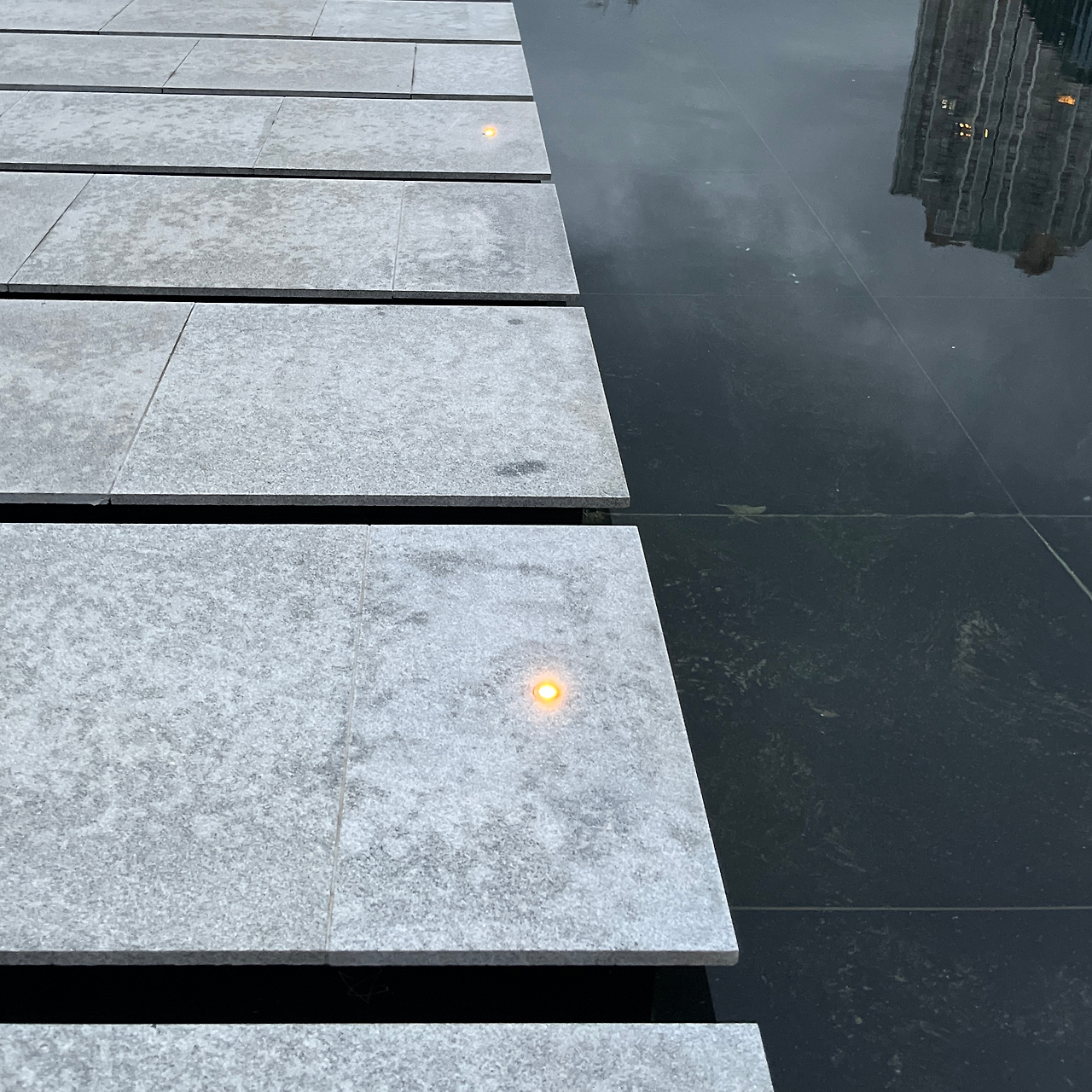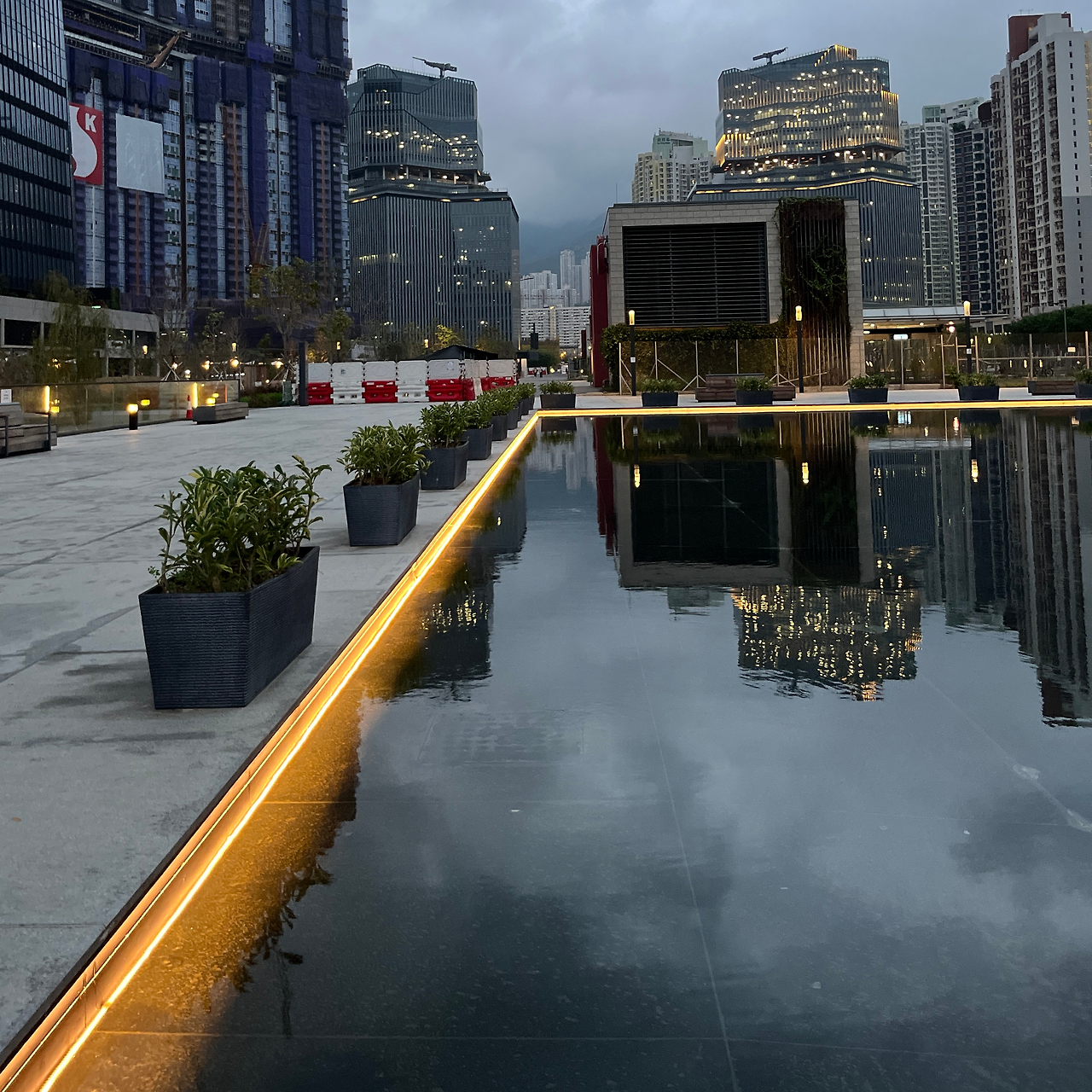 광장공간에 놓인 조경공간과 수변공간은 이용자의 안전성 또한 중요한 디자인 부분이다. 가장 큰 사고는 인재이기 때문에, 조명은 안전성을 고려하여 디자인되어야 한다. 이용자에게 시각적으로 공간의 영역을 보여주고 인지할 수 있도록 함으로써 부딪히거나 물에 빠지는 위험으로부터 보호해 줄 수 있다. Linear led lighting을 통해 어디까지 접근하는 것이 안전한지 혹은 Spot lighting을 통해 길을 안내해 줄 수 있다.