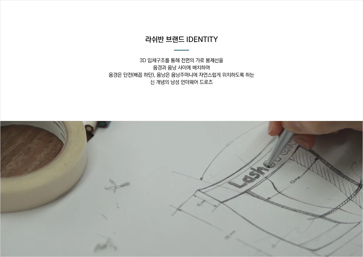 라쉬반은 한국 브랜드로, 프랑스어 여성 접두사 ‘라’에 왕자의 첫 돌상이란 뜻인 ‘쉬반’이 결합된 상표이다. 이름만으로는 해외 제품처럼 들리지만, 국내 토종 브랜드이다. 브랜드 아이덴터티는 3D 입체구조를 바탕으로 천연의 가로봉제선을 신체에 적합하게 배치한 남성 언더웨어이다. 브랜드의 핵심이 엔지니어적 접근이라 타 제품과는 분명한 차별화화를 둘 수 있었고, 소재의 개발을 통해 감각의 편안함까지 제공하며 이전에 경험해 보지 못한 새로움을 남성들에게 제공했다.
